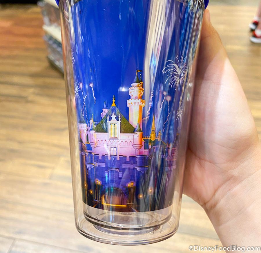 Plus, look! It’s got fireworks on it! We’re totally missing watching the night sky light up in Disneyland right now, so this tumbler is actually serving as a sweet reminder for us.