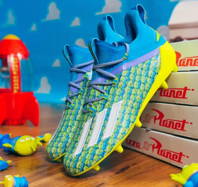 There are actually TWO pairs inspired by the little green aliens! For team players, pick up the Adidas Aliens x Freak Football Cleats.