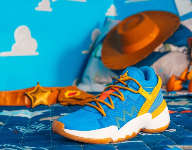 This collection features some super stylin’ shoes inspired by some of the main Toy Story characters. First up, there are these Adidas Woody x D.O.N. Issue #2 Shoes. These kicks are inspired by Woody himself and even feature a little sheriff star. We wonder if there’s a snake inside?