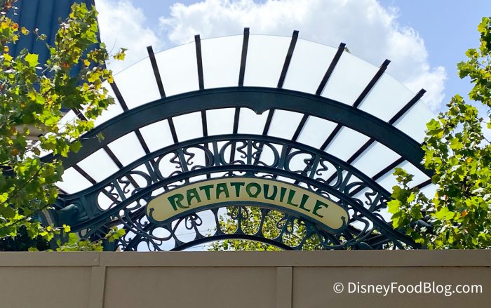 One of the theming elements outside of the attraction is the sign for Gusteau’s, the restaurant from the film. And while we’ve been able to see this sign from the Disney Skyliner for several months, one of our readers spotted an exciting milestone last night!