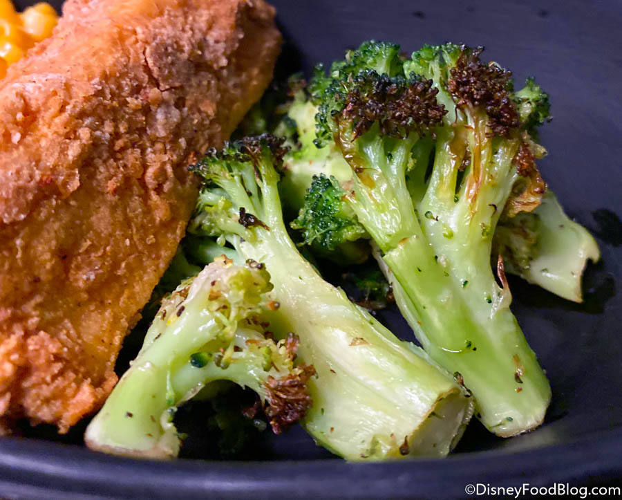 We also really enjoyed our roasted vegetables, which was broccoli! In the past, this veggie has been a little salty for our taste buds, but it was cooked very well and helped to balance out the heavier mac and cheese and fried chicken.