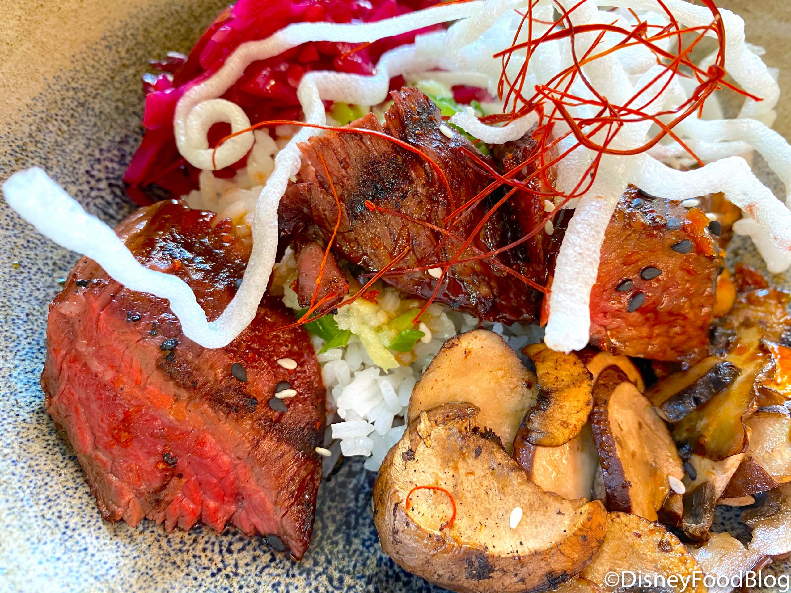 The bowl comes with steamed rice, red cabbage kimchi, ginger-scallion oil, and crimini for $16…