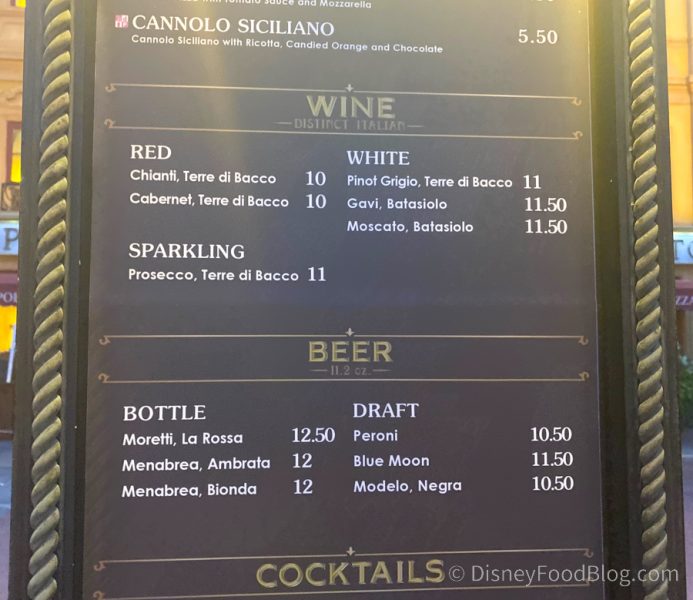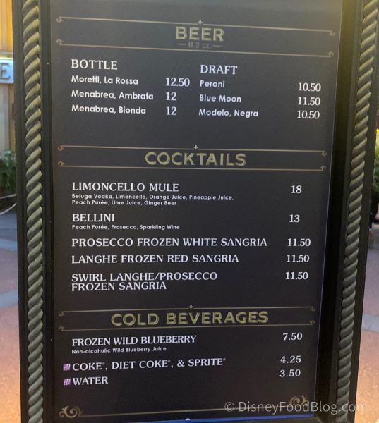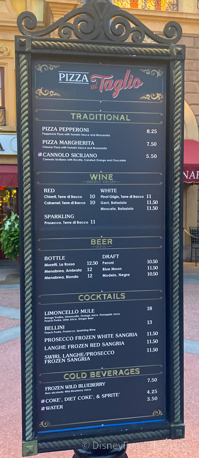 This used to be the Via Napoli Pizza Window and is, in fact, attached to Via Napoli. It’s a seasonal location, so we were totally surprised it was open! (Maybe that proves just how crowded the parks have been lately!)