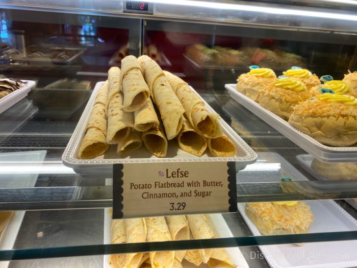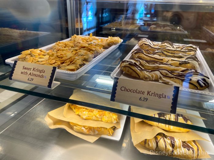 But the most important question here is WHAT’S IN THE CASE? Although we didn’t spot any specialty items (like the Frozen 2 Caramel Mousse we had last year), the beloved guest favorite snacks ARE BACK. That includes the Sweet Kringla with Almonds and the Chocolate Kringla, both for $6.29 each.