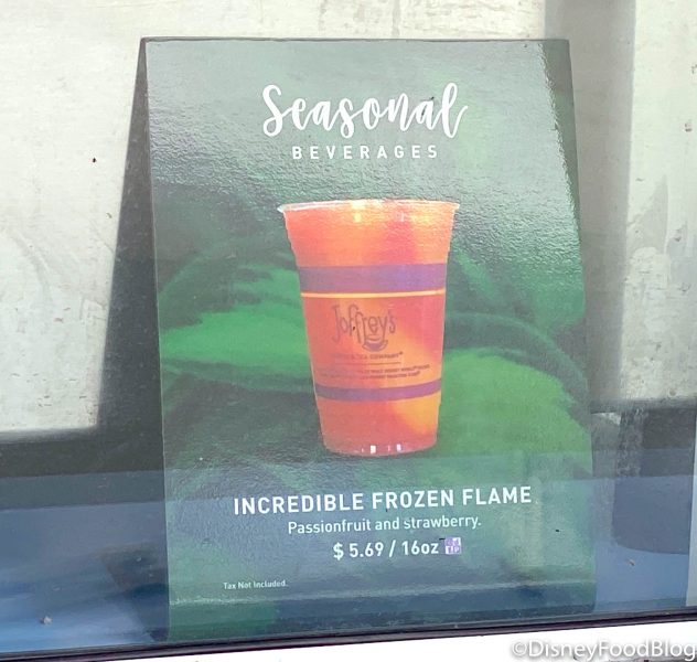 While we noticed that the Incredible Frozen Flame was back over in Disney’s Animal Kingdom, the passionfruit and strawberry drink has also popped up at Joffrey’s Revive in Tomorrowland too!