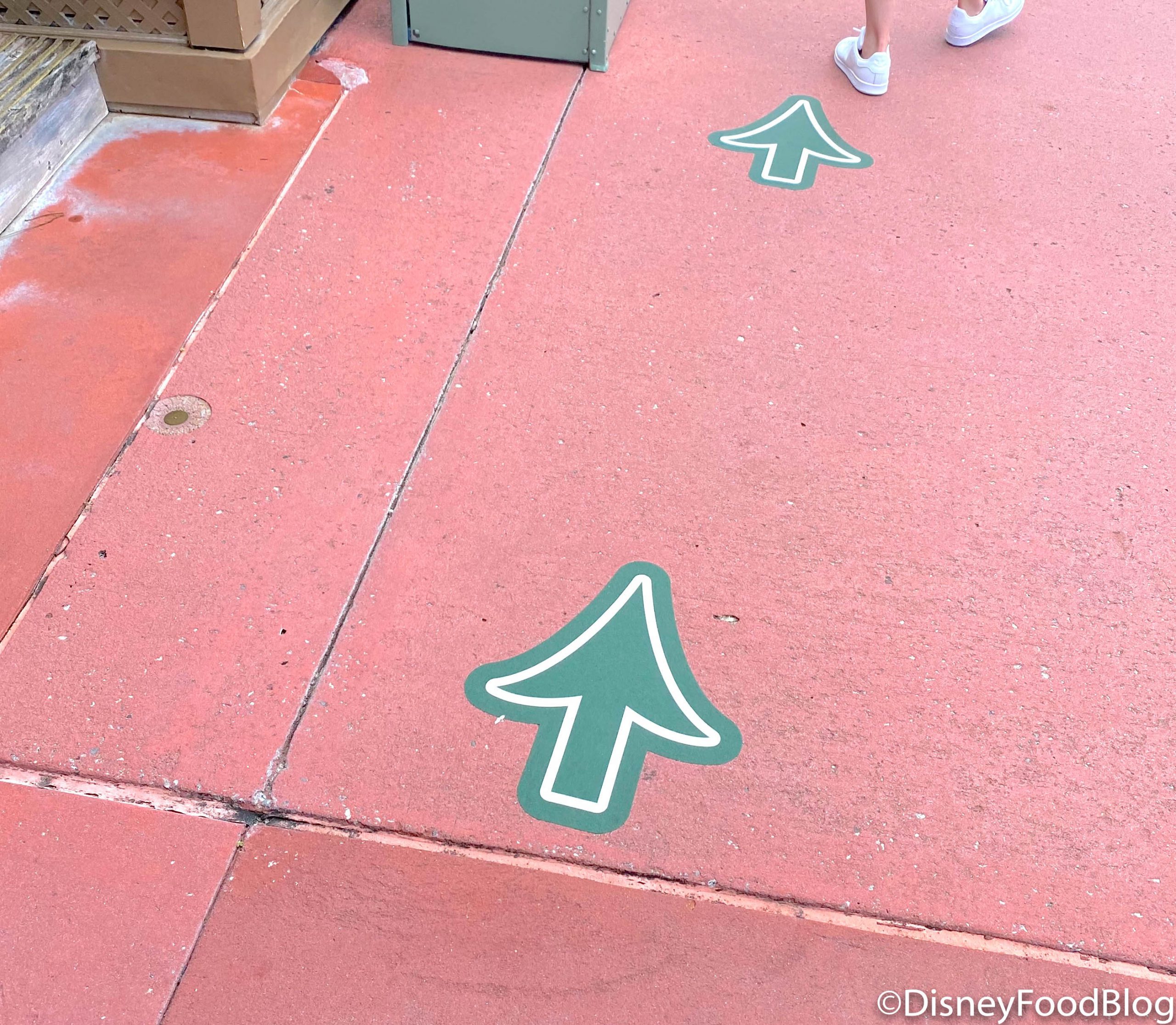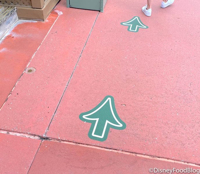 If you’re heading into the parks, make sure to listen to the Cast Members who are doing their best to help guests and control traffic at the same time! And, be on the lookout for arrows on the ground versus distancing markers that state for guests to stop.