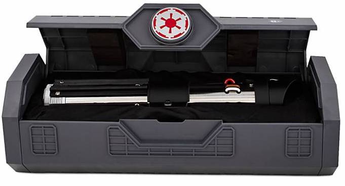 The lightsaber hilt comes with an awesome case that has a hinged lid and lined interior, with the crest of the Galactic Empire on the front.