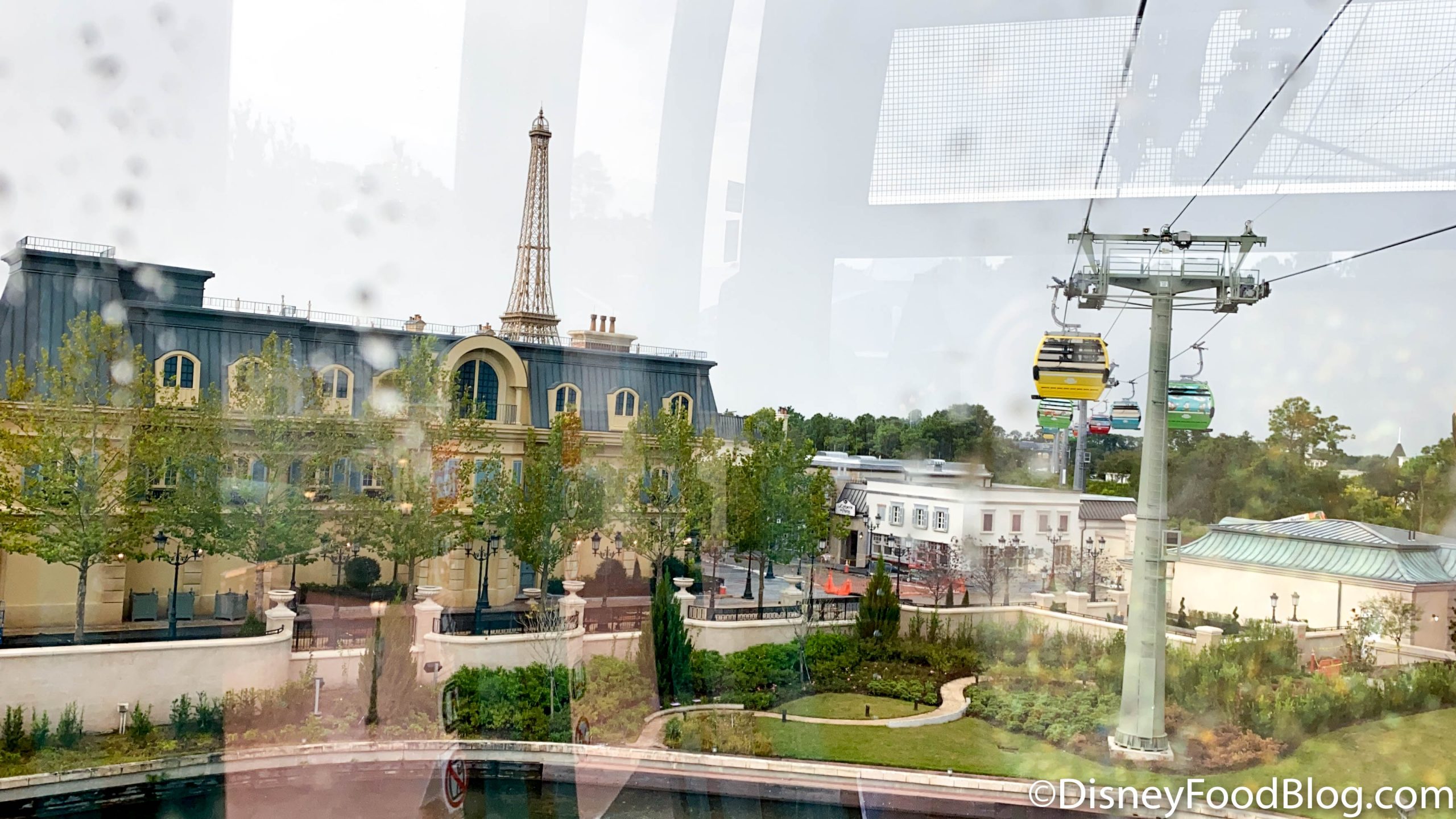 Just few days ago, we shared some photos with you of the Gusteau’s sign in this area all lit up! Très magnifique! Today, we took a trip past this area on the Disney Skyliner to see what other changes we could spot.