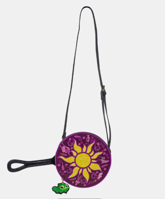 The latest Danielle Nicole Bag is the Disney Rapunzel Flying Pan Crossbody and it is SO clever! The bag is shaped just like Punzie’s frying pan and it has the pretty sun symbol from Corona on it!