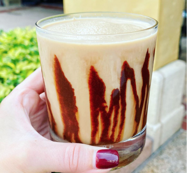 This boozy drink is a Frozen Coffee Bourbon Cream, and it looks incredible.