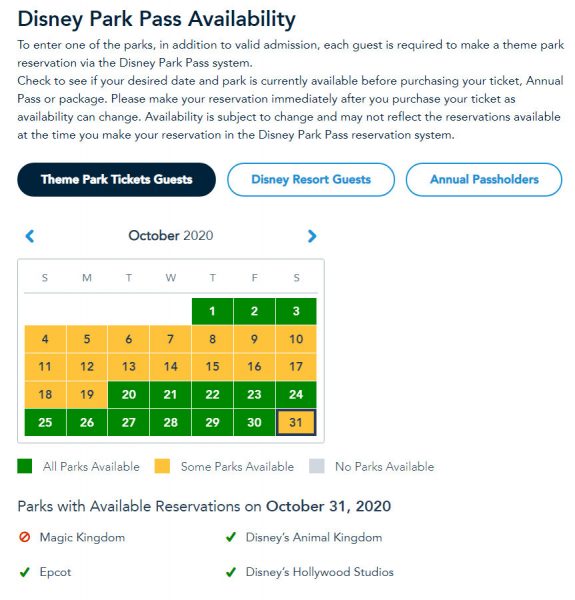 However, we expect that the other parks might fill up on Halloween, too, so if you’re wanting to go to Disney World on October 31st, better get those park passes now! Keep in mind, though, that this could change: Disney often releases more park passes for certain days.