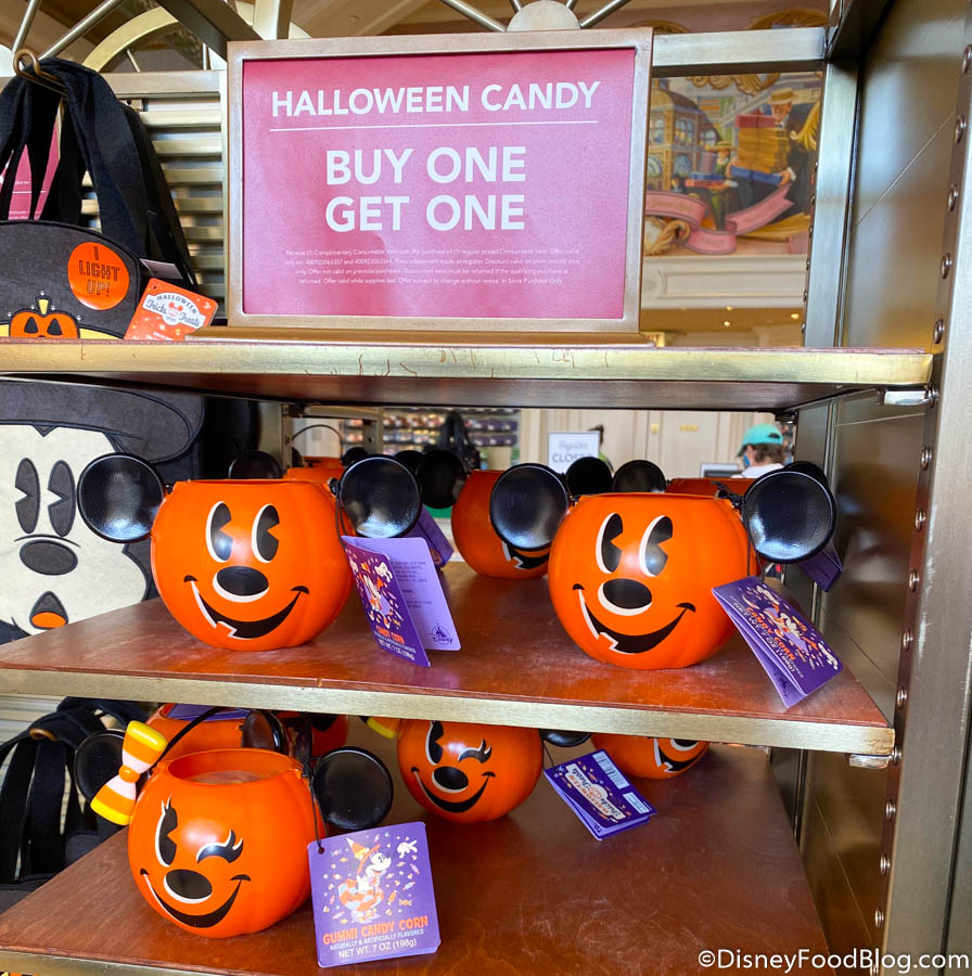 Looking to get stocked for the trick-or-treat rush? Snag Halloween Candy in a Mickey or Minnie Bucket and then snag another! These cuties are buy-one-get-one and STUFFED with treats.