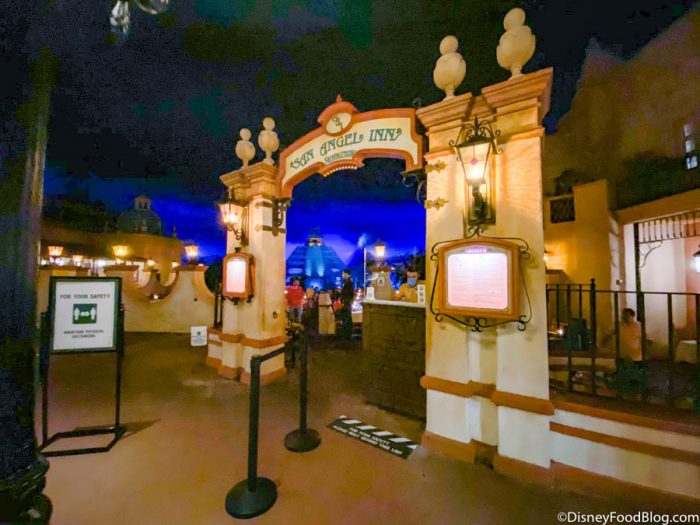In all of our years dining at San Angel Inn one thing has remained consistent: the atmosphere is the BOMB. It’s romantic, dark, and striking. If you’re on the fence about dining here, the theming is a pretty solid reason to give it a shot. The restaurant is notably more enjoyable since reopening due to the tables being spaced out. They were uncomfortably tight before! The food is unique, so we highly recommend scoping out the menu before you book that dining reservation to ensure you find something you’ll enjoy. We enjoyed our meal — we’re rarely ones to say no to melty cheese in Disney World and our chicken was tasty, particularly the sauce! Are these foods worth rushing back to San Agnel Inn to have again? Not really, but we still left satisfied! And you know we hopped on Gran Fiesta Tour as soon as we left. It’s basically mandatory if you eat here! 🙂