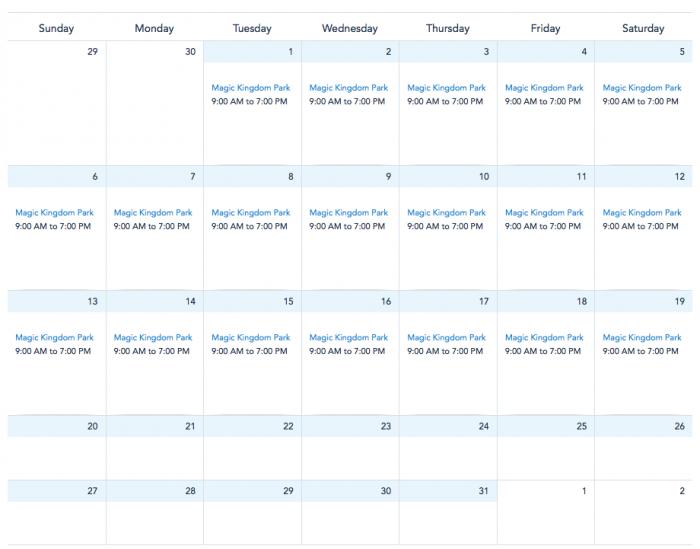 Previously, Disney World park hours had only been released through December 12th. Now, the Disney World park hours calendar shows all operating times through December 19th.