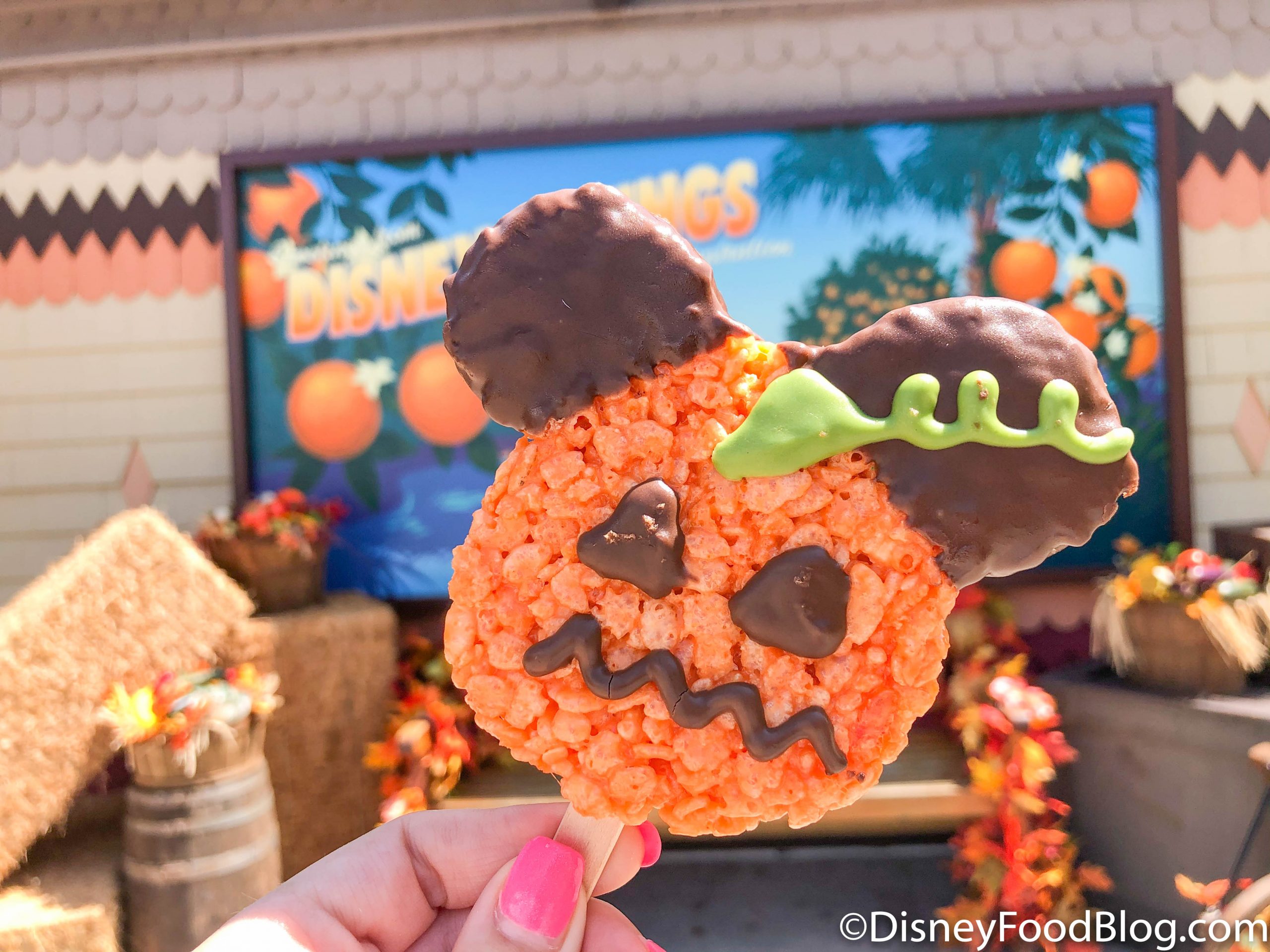 …the Mickey Jack-o’-Lantern Rice Krispie Treat from Goofy’s Candy Company.