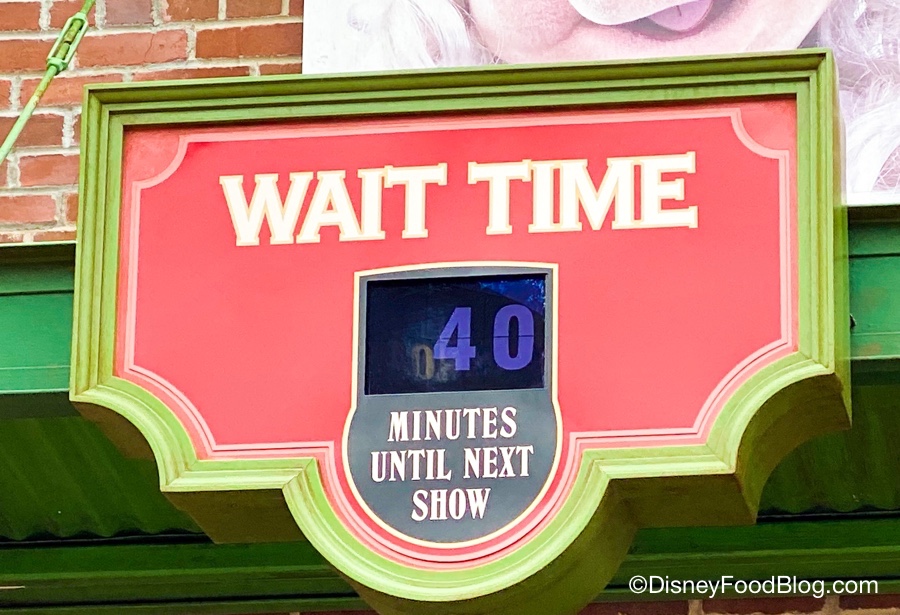 While we have seen a somewhat longer than average wait time at this attraction on the weekends before, most of the time, the zany theater show is a BREEZE to get into. Today was one of those times, as the quoted wait time was a whopping 40 minutes!