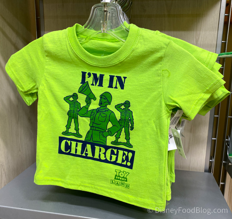 In case you ever forget who’s really in charge, here’s a shirt for your child that will remind you! We love the bright green on this “I’m In Charge” Toy Story Kids’ T-shirt, which costs $17.99. It also features the Toy Story Land logo. Thanks for the reminder, Sarge!
