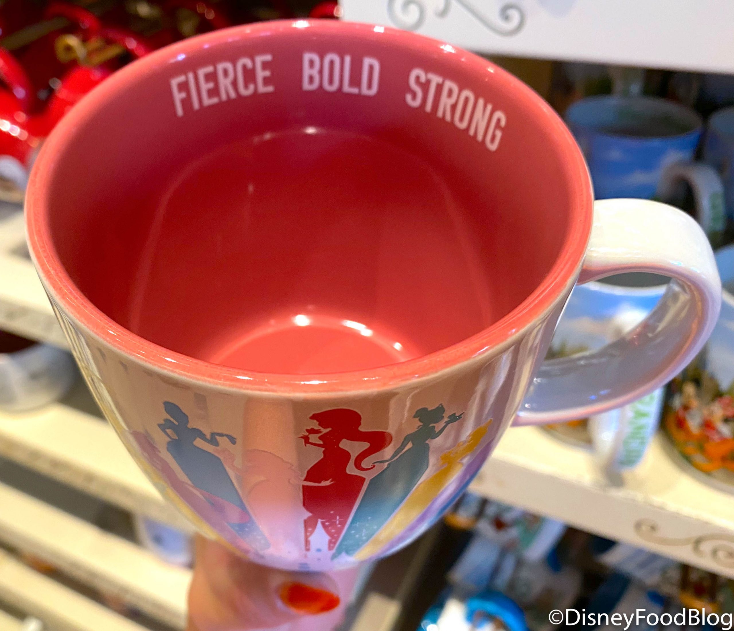 The inside of the Disney Princess Mug is a gorgeous pink like Aurora’s gown with the saying “Fierce, bold, strong” to remind you just how amazing you are for $14.99.