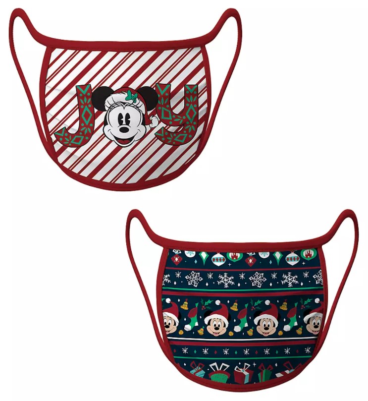 We felt EXTRA jolly when we spotted this Limited Release Cloth Mickey and Minnie Mouse Joy Face Masks 2-Pack online. One design is a cute candy cane striped fabric with the word “Joy” and Minnie replacing the “O.”