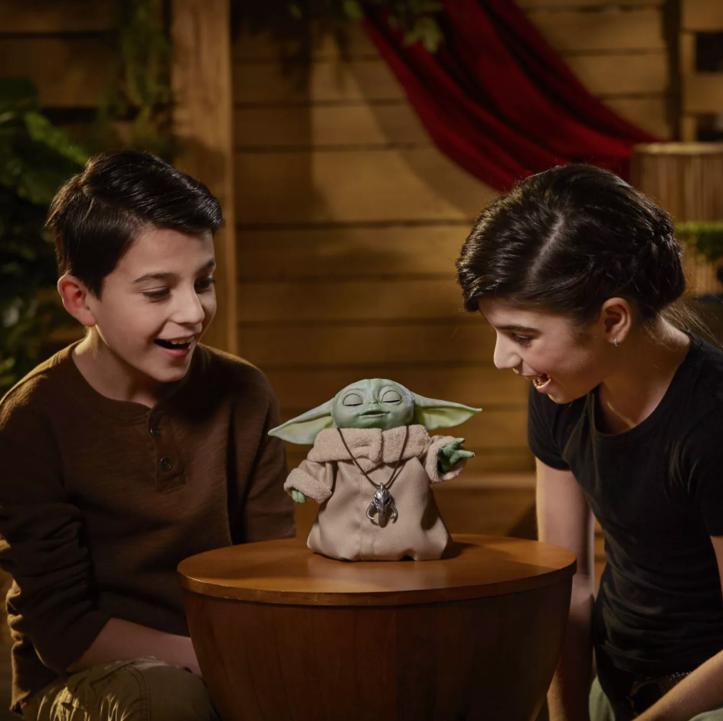 We’re staying aboard the Star Wars train for this last item off of Target’s list of top holiday toys! Perhaps you have heard of a certain “Child” affectionately referred to as Baby Yoda. Did you know that you can have your very own animatronic doll version of this l’il cutie?