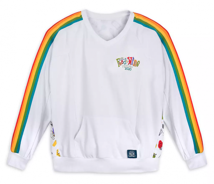 The back of the pullover is pretty cute, too, featuring a pattern that includes Chef Figment, Spaceship Earth, and lots of food and cooking utensils.