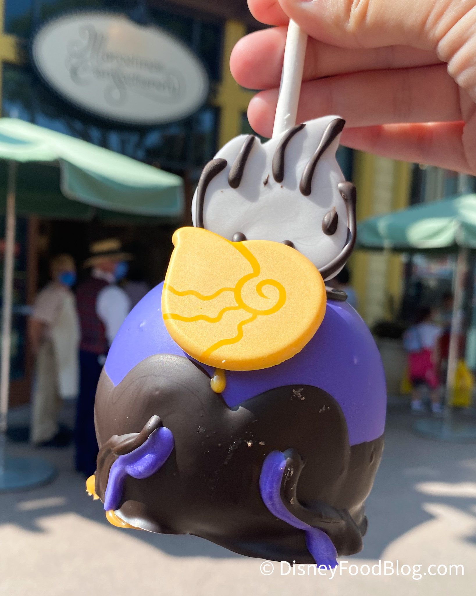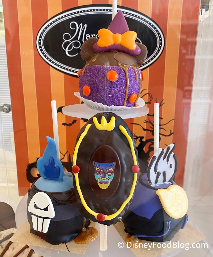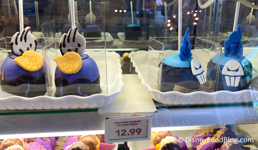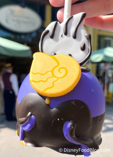 There are also two villain-themed caramel apples available for purchase at Marceline’s, inspired by Ursula and Hades. Disney is no stranger to caramel apples, but these two are definitely some of the coolest ones we’ve seen recently!