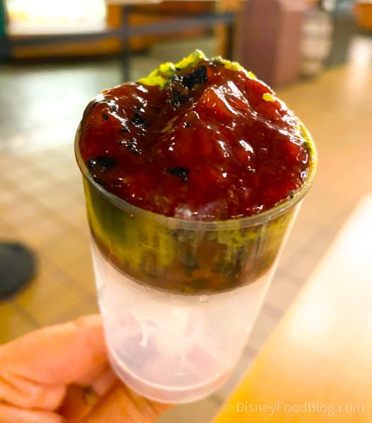 That’s where we discovered the Frightfully Spooky Strawberry Shortcake Push Pop, which looks a little weird, but it’s strawberry shortcake — and the strawberry shortcake here is DELISH — so we had to try it out!