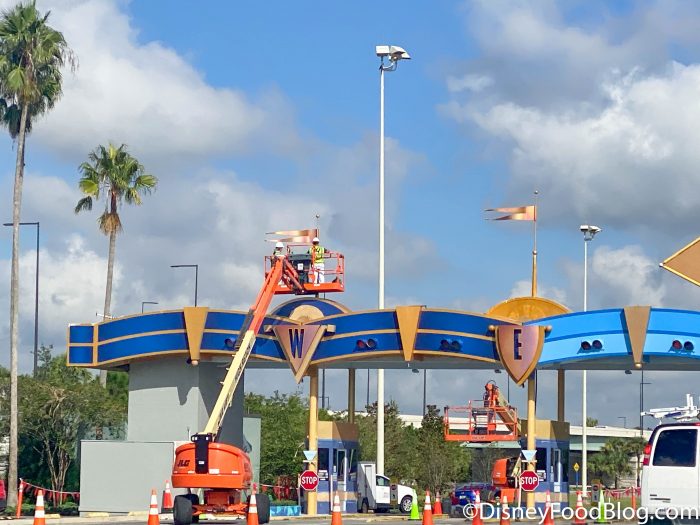 Over at Magic Kingdom, we’ve got the TRON construction in progress. Plus, there’s some construction going on at Remy’s Ratatouille Adventure and Guardians of the Galaxy: Cosmic Rewind in EPCOT, as well as the Star Wars hotel elsewhere on property. Recently, we added another project to our watch list — the Magic Kingdom entry sign paint job.