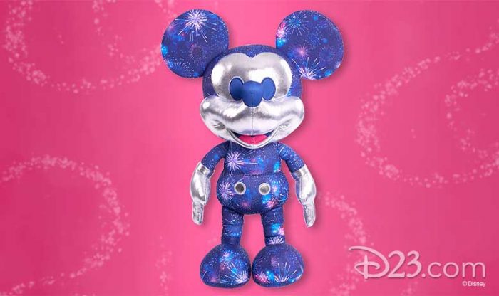 Next, there’s the Fantasy in the Sky Mickey Mouse plush. This limited-edition plush celebrates Disney Parks fireworks (something we all miss dearly right now). Mickey has a beautiful fireworks print on him with some metallic details on his face and hands, making him extra shiny!