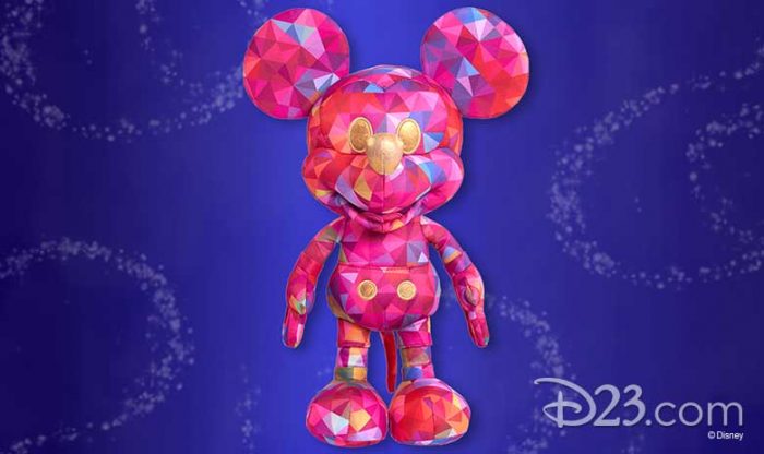 Let’s take a look at the ones that will be available. First, there’s the Kaleidoscope of Color Mickey Mouse plush, which celebrates Walt Disney’s Wonderful World of Color (anyone else singing the song in their heads?)! Mickey is made out of a soft, thick polyester fabric and has a colorful kaleidoscope print all over with holographic gold embroidered buttons. We love all of the geometric designs in this pattern.