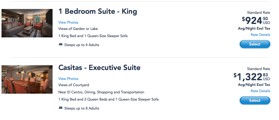 We took a look at the Walt Disney World website and were able to find some suites available at Disney’s Coronado Springs Resort for a proposed stay scheduled for October 26th through November 1st. Availability will, however, differ depending on when you’re looking to visit Disney World.