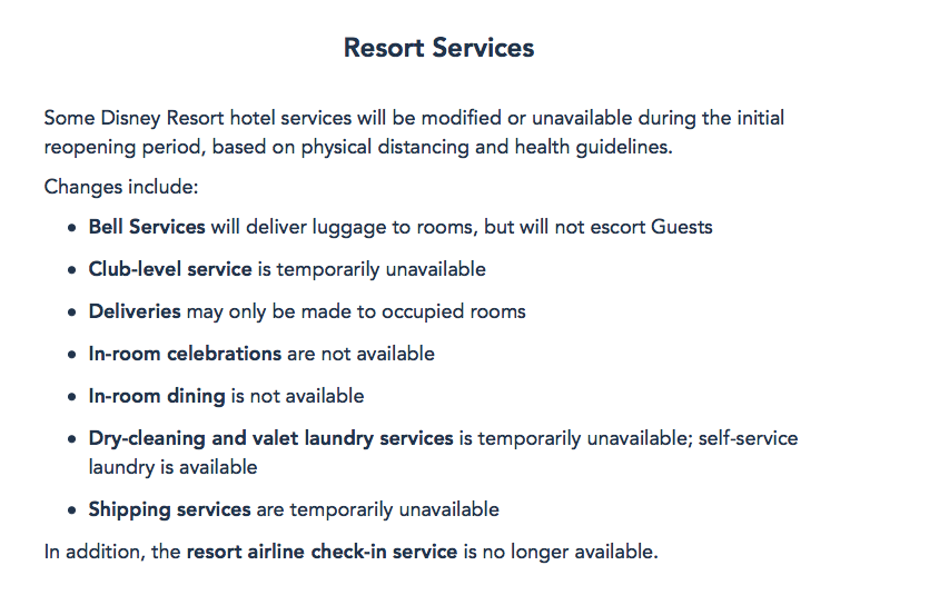 Disney has specified, however, that Club Level service still remains temporarily unavailable. The Disney World website continues to reflect this.