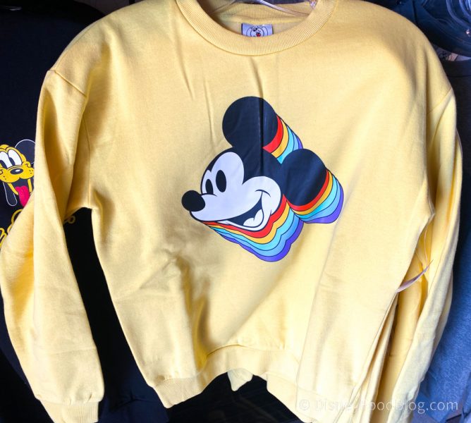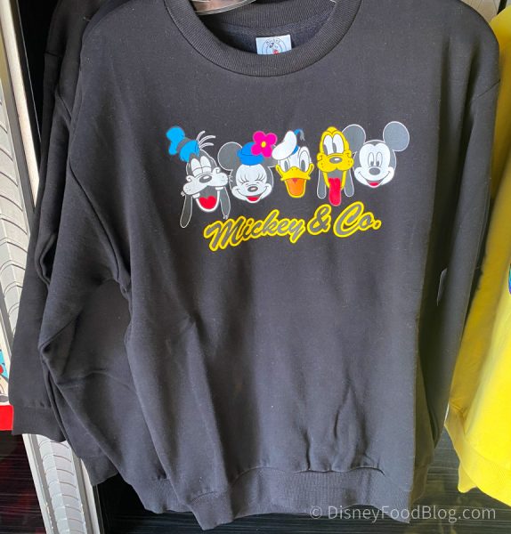 We popped into these two shops while we were looking for new merch and found some pretty awesome retro Mickey & Co. shirts! The first was this fun and colorful Mickey & Co. Pullover with Goofy, Donald, Pluto, Minnie, and Mickey!
