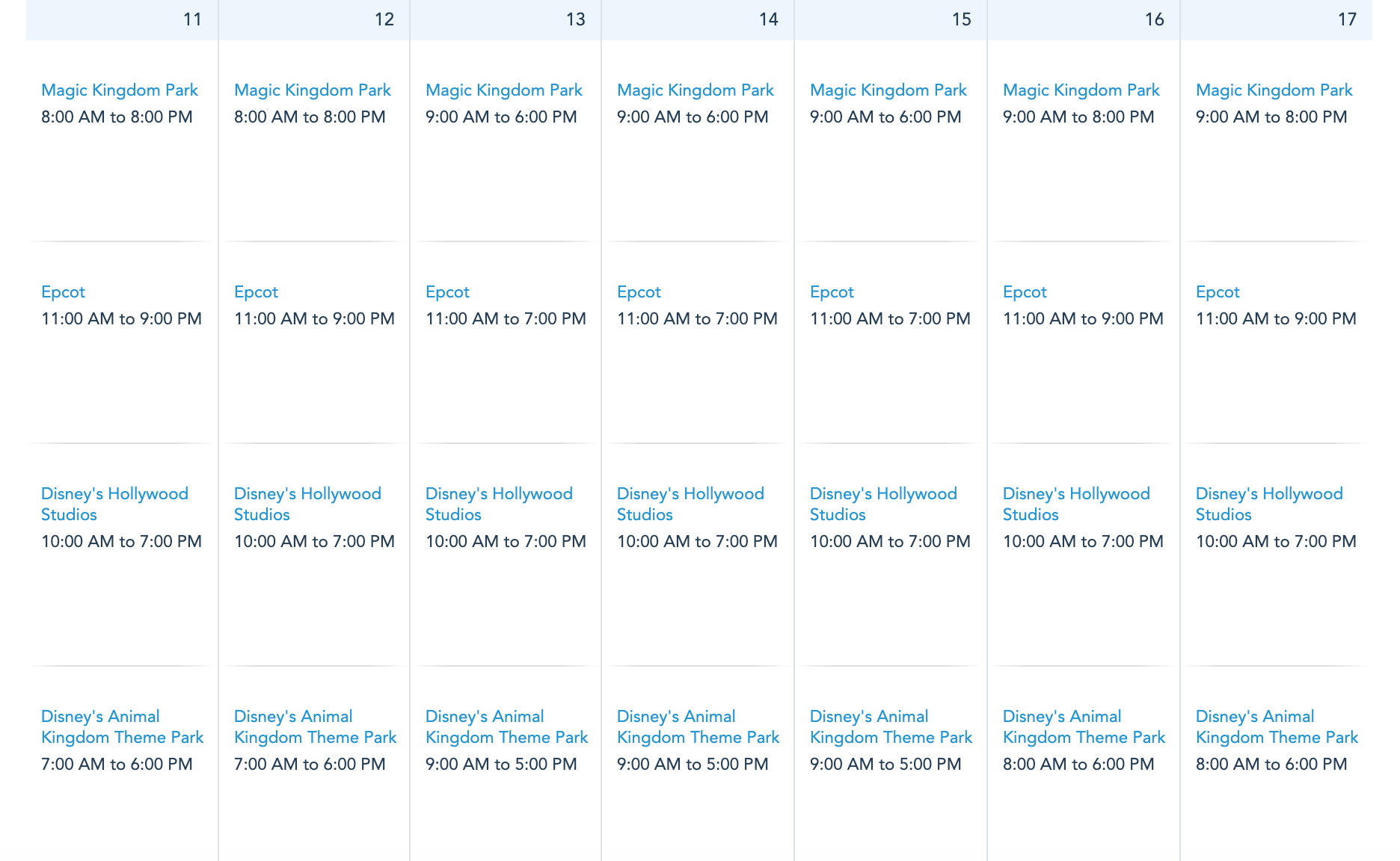 The Magic Kingdom originally extended its hours to 9AM to 8PM, but the parks will now be open from 8AM until 8PM instead. On the other hand, Disney’s Animal Kingdom saw an extension from 8AM until 6PM, which has now be switched to 7AM until 6PM.
