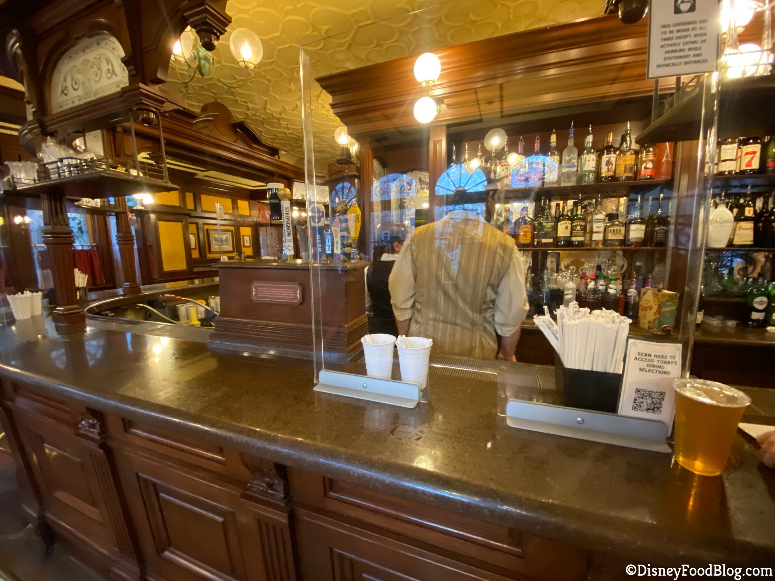 As we walked through World Showcase, we had to stop into our favorite British pub, Rose & Crown! We noticed something very different about the inside…NO TABLES!