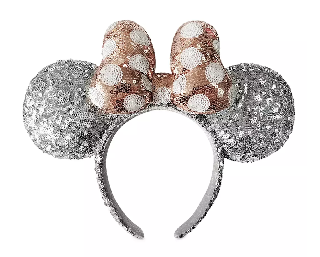 First up is the darling Minnie Mouse Silver Sequined Ear Headband with a Rose Gold Bow! You’ll shimmer and sparkle all day long with these ears that we’ve spotted in Disney’s Hollywood Studios as well as World of Disney at Downtown Disney!