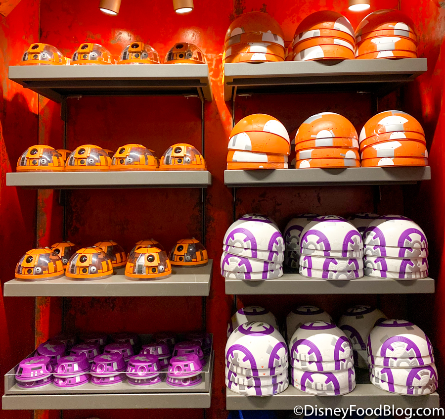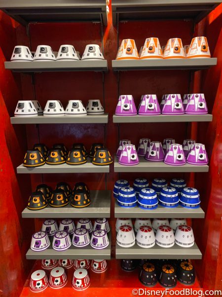 Each piece is 15 credits. (That’s $15 in space talk.) Colors range from the Dark Side-inspired black and red to the classic orange we see on BB-8. The Cast Member told us to check back with the depot because more surprises like this may show up soon!