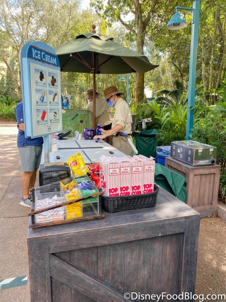 Looking to grab a quick hot dog while at Animal Kingdom? During our last trip, we noticed that the Ice Cream Cart that is near the exit of the Finding Nemo: The Musical theater and just before DinoLand U.S.A. was selling hot dogs!
