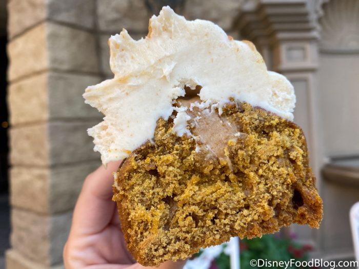 Sure, we’ve seen our share pumpkin cupcakes before, but this isn’t ANY old pumpkin cupcake. It’s a pumpkin cupcake that comes with a taste of creamy salted caramel delight. It’s a pumpkin cupcake we’ve been dreaming about since last fall. One Pumpkin Cupcake to Rule Them All. We’ve stalled long enough. Come look at the beauty, the glory, the grace of the salted caramel pumpkin cupcake from EPCOT.