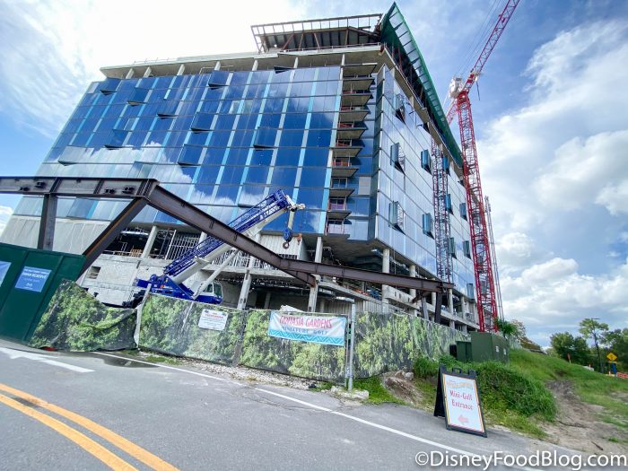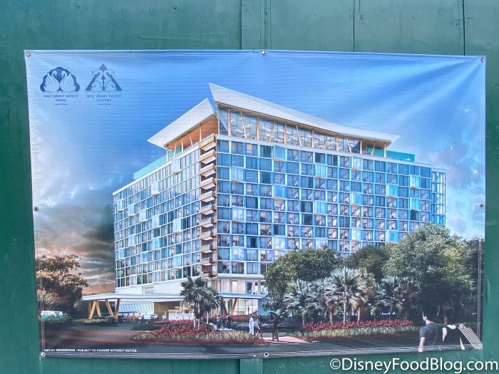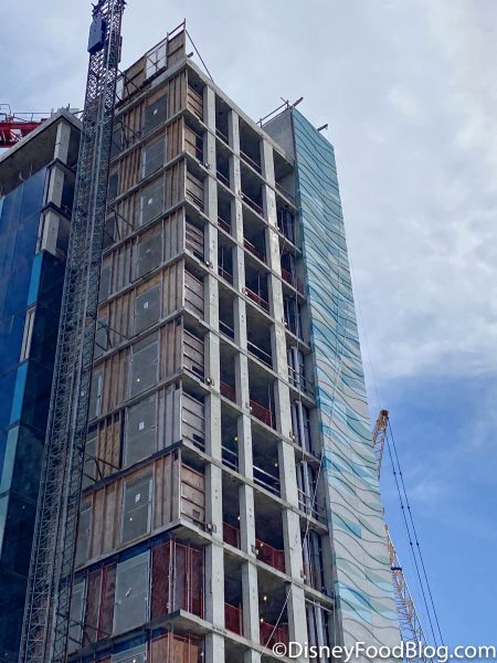 We’ve been watching construction progress at this spot and looking for updates from Disney since it was announced in 2018. It is set to be a new addition to the Disney World Swan and Dolphin Resort. It will have over 300 guest rooms, a signature restaurant and bar, a health club, pool, and more.