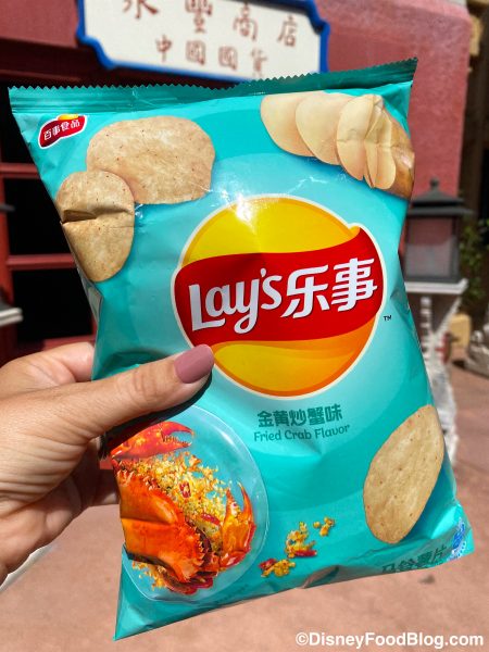 Of course, there are plenty of eats from around the world available at the Taste of EPCOT International Food & Wine Festival. But the snacks don’t stop there! In the past, we’ve spotted several unique potato chip flavors like candy, tomato, and squid available at House of Good Fortune in the China Pavilion. And today, we found another interesting flavor to snack on!