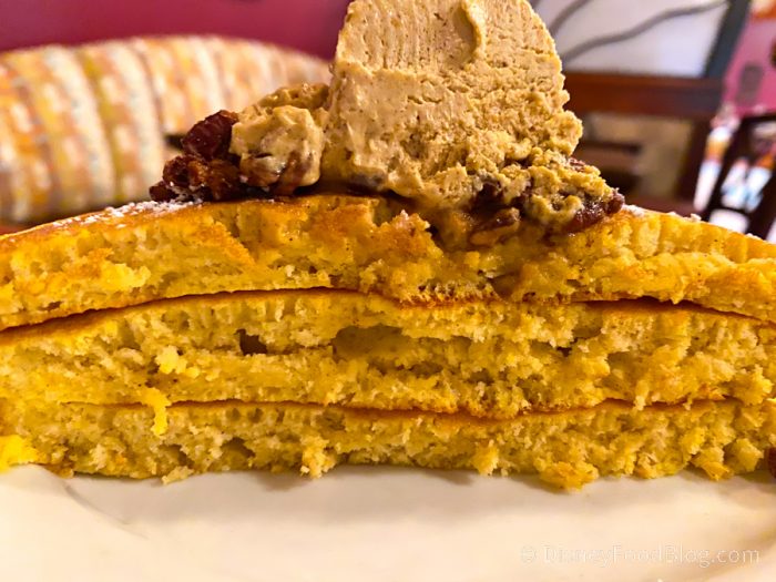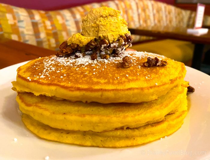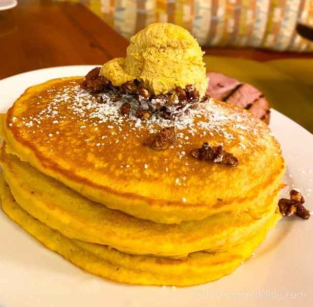 Pumpkin pancakes are a seasonal breakfast treat at Kona Cafe at Disney’s Polynesian Resort. And we always celebrate their return each fall! And now we can report that these uber delish pancakes ARE BACK this year!