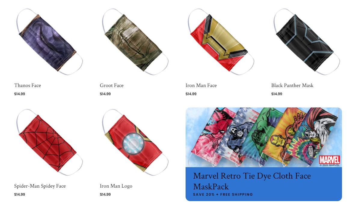 Not only are there masks featuring Mickey and other classic Disney characters but there are TONS of other masks that have to do with Disney owned entertainment — like Marvel superheroes and villains!