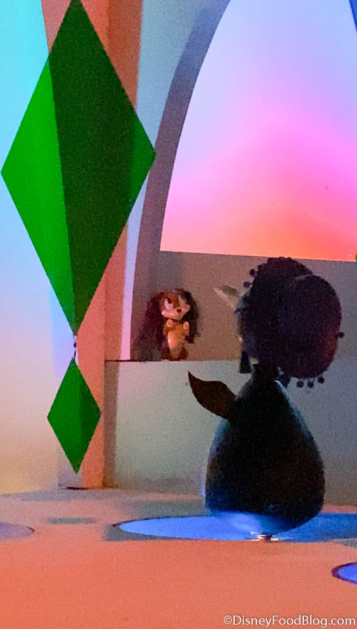 A reader later reached out to us and said her daughter had accidentally dropped her Fifi toy while on the ride recently, and she had filed a report with Disney to try and get it back. Our guess is that a Cast Member found Fifi and placed her in the South America room.