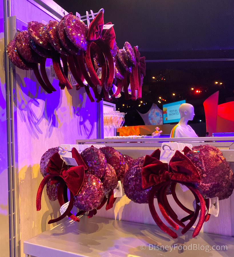 If you’re looking for the Minnie Mouse Food and Wine Festival Ears, you’re out of luck for now — they are out of stock across the park. However, we noticed they were replaced with the Minnie Frosted Berry Ears at World Showplace.