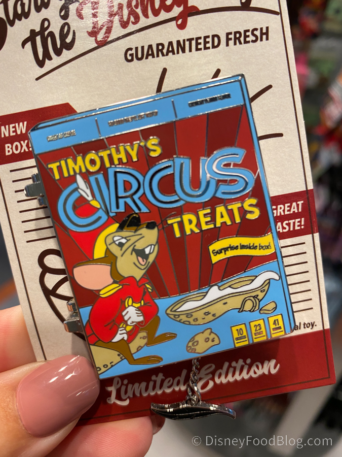We spotted a new adorable pin in the Cereal Box Pin Series! The Limited Edition Timothy Mouse Cereal Box Pin is the second pin to be released in the series.