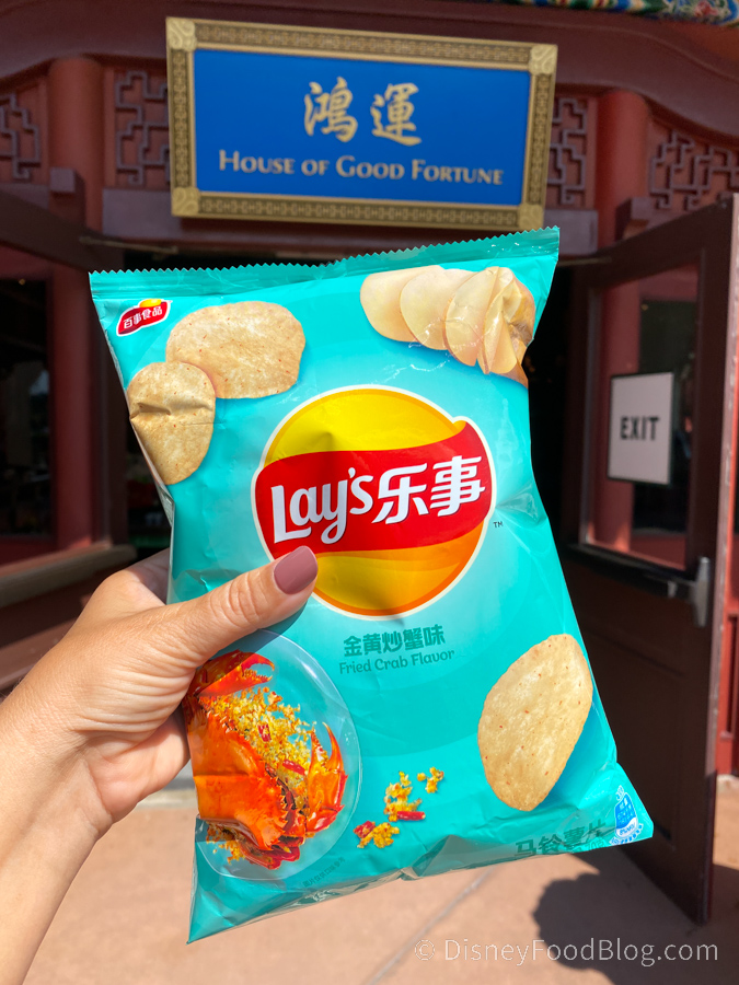 At The House of Good Fortune at the China Pavilion, we tried out the Fried Crab flavored Lay’s potato chips. These are the perfect chips for seafood fans, and we personally liked that they were nice and salty.