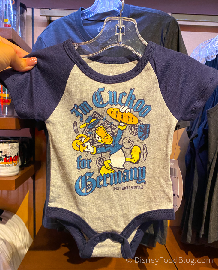 When we learned about an Annual Passholder Pop-Up Shop coming to EPCOT, we couldn’t wait to get in line for it! And once we got in there, we spotted so many great deals on merchandise that we couldn’t contain our excitement! Seriously, look at this adorable Germany Mickey Mouse Onesie for $19.99.