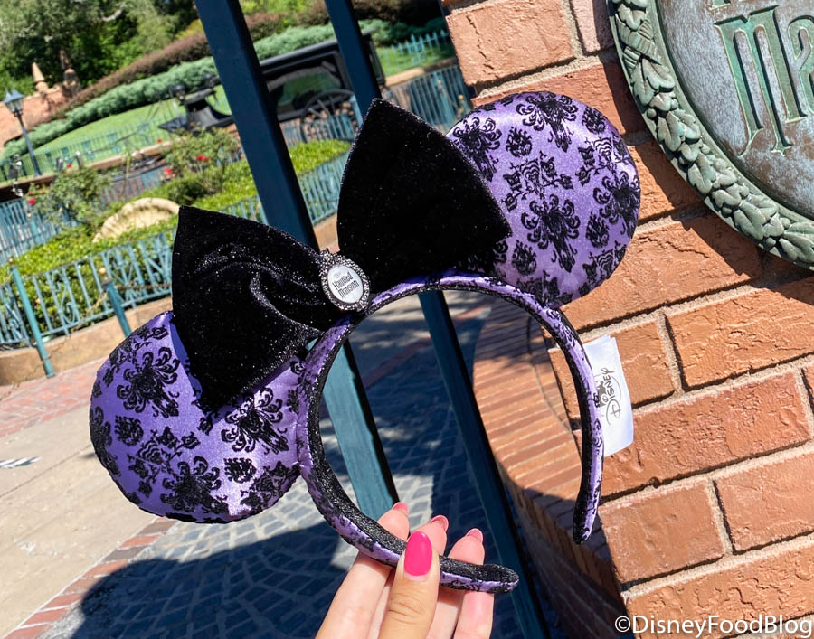 One of the most well-known pieces of imagery related to the Haunted Mansion is the iconic purple and black wallpaper print. In fact, we’ve seen this pattern on a ton of merch in the past, including spirit jerseys, Minnie Ears, Loungefly bags, and more!