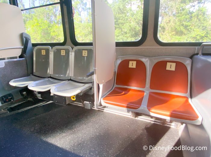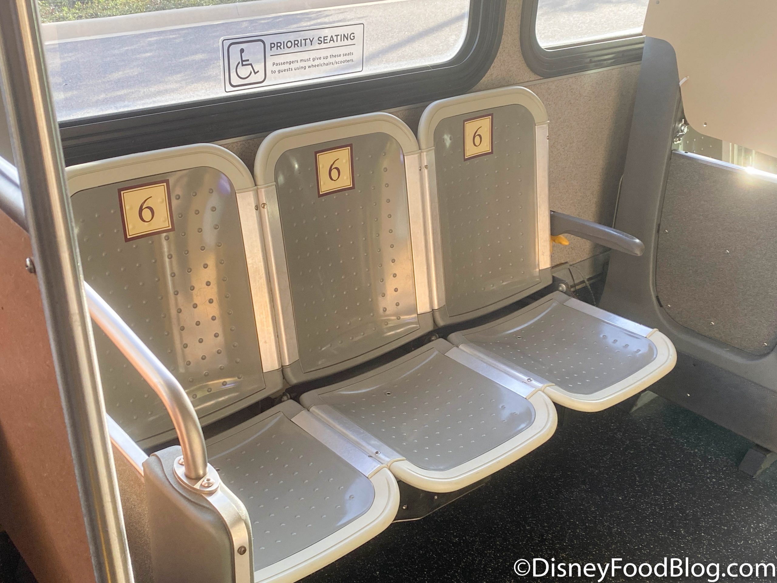 We rode another bus earlier in the day that only had the 6-zone arrangement, however, so it appears that this new 10-zone style is not available in all of the buses. It’s possible Disney will continue to change the bus zones to accommodate more guests in a more efficient manner as they evaluate their transportation needs. We’ll continue to keep tabs on the bus seating arrangements and let you know if we spot any more changes!